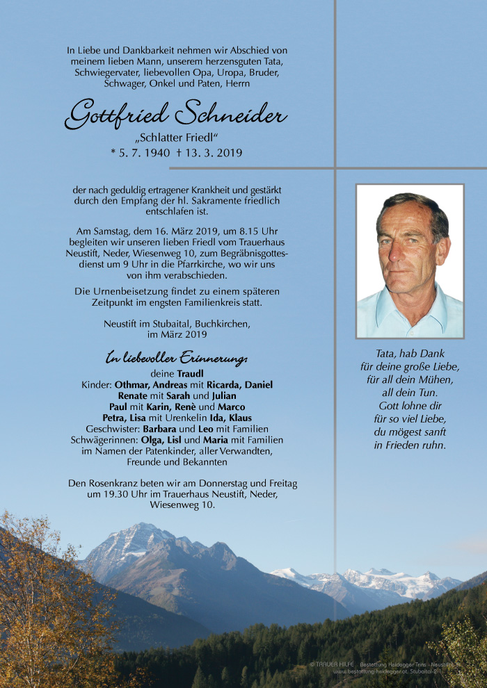 Mein aufrichtiges Beileid. Erich15.03.2019 17:12 - Erich Steidl