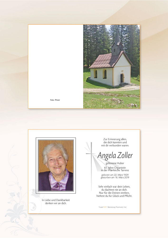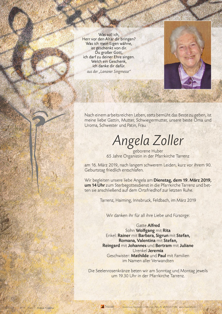 Unsere aufrichtige Anteilnahme am Heimgang von Angela.