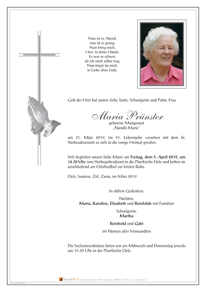 Durch dieses schöne und dankbare Erinnern öffnet sich der Lebenskreis wieder und so kann und wird die Marie in unseren Gedanken und vor allem in unseren Herzen weiterleben.