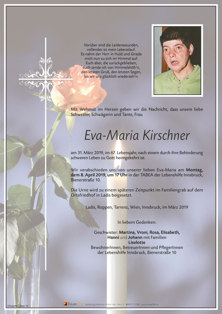 Neue Kerze für Eva-Maria Kirschner entzünden.