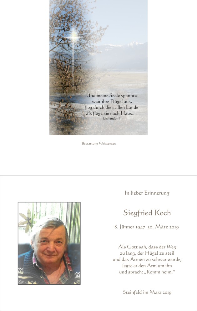 Bestattung wurde durchgeführt von: Markus Ertl Bestattung Weissensee Neusach 26 9762 - Weißensee Tel.: 04713 22 29 zum Bestatter