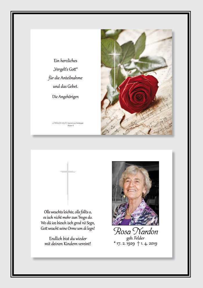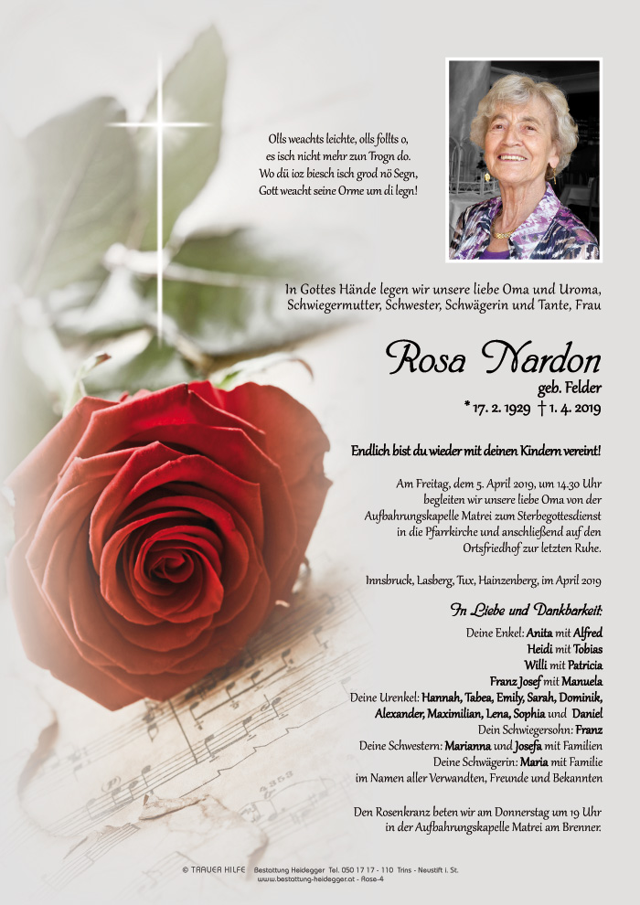 Bestattung wurde durchgeführt von: Karl Neurauter Karl Neurauter Bestattung Heidegger Brennerstraße 69 6150 - Steinach am Brenner Tel.: 05275 5211 zum Bestatter