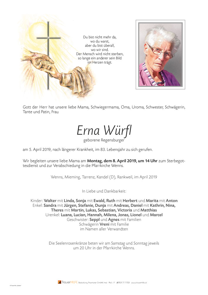 Ich persönlich werde meine Schwägerin Erna als ganz tolle Frau in lieber Erinnerung behalten.