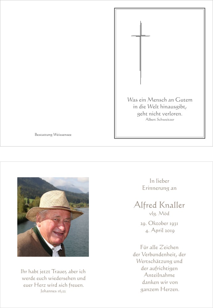 Alfred Knaller war für mich stets ein verdienstvoller, kollegialer Bürgermeister - Kollege und aufrichtiger Freund. Ich werde ihn in guter und dankbarer Erinnerung behalten.