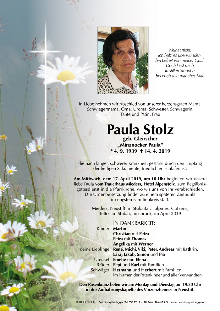 Friedhof Mieders, † 14.04.2019 (79 Jahre)