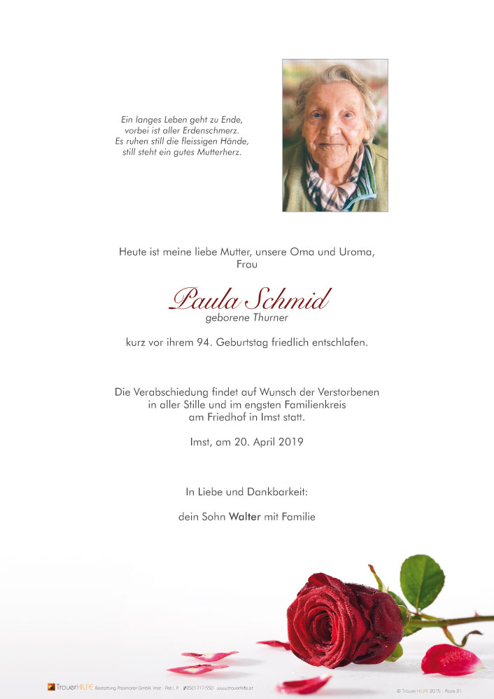 Schlafe wohl in Gottes Hand Paula