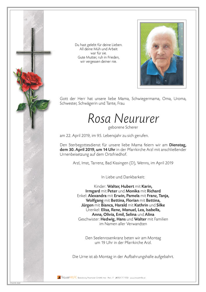 Friedhof Arzl im Pitztal, † 22.04.2019 (94 Jahre)