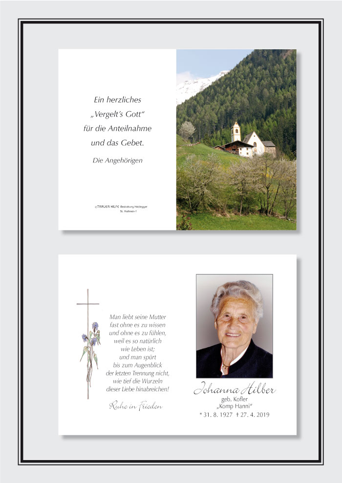 Hanni, in lieber Erinnerung an insere nettn, humorvollen, geist und lehrreichn Ratscher beim Komp und die Ausflüge in dei Heimat