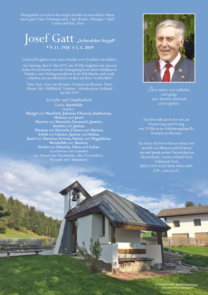 Seppl war ein hervorragender Bauer und Grauviehzüchter aus Leidenschaft! Unvergessen sind die vielen freundschaftlichen Begegnungen und gemeinsamen Ausstellungsbesuche in Tirol und Südtirol! Seppl hat mit seinem Wissen und seiner Viehkenntnis immer imponiert! Möge er ruhen in Frieden!