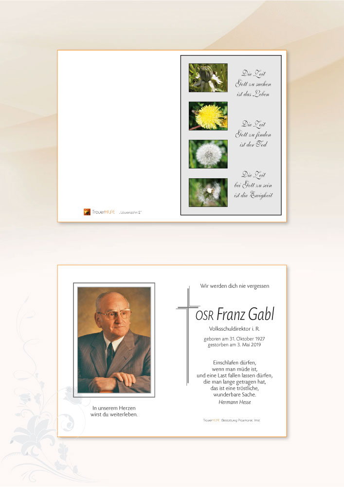 Bestattung wurde durchgeführt von: Daniel Klocker Bestattung Praxmarer GmbH Thomas Walch Str. 4 6460 - Imst Tel.: 05412 64250 zum Bestatter