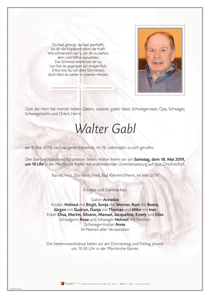 Ruhe in Frieden lieber Walter10.05.2019 23:10 - Friedl Jaqueline