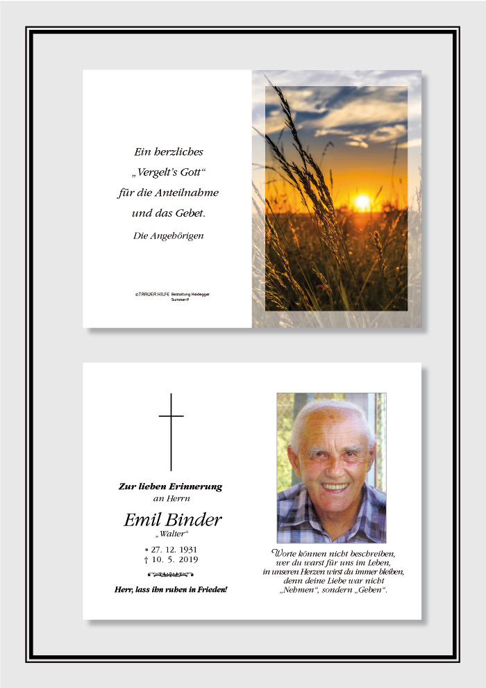 Hiermit möchte ich mein aufrichtiges Beileid zum Ausdruck bringen und ich werde Emil in netter Erinnerung bewahren.