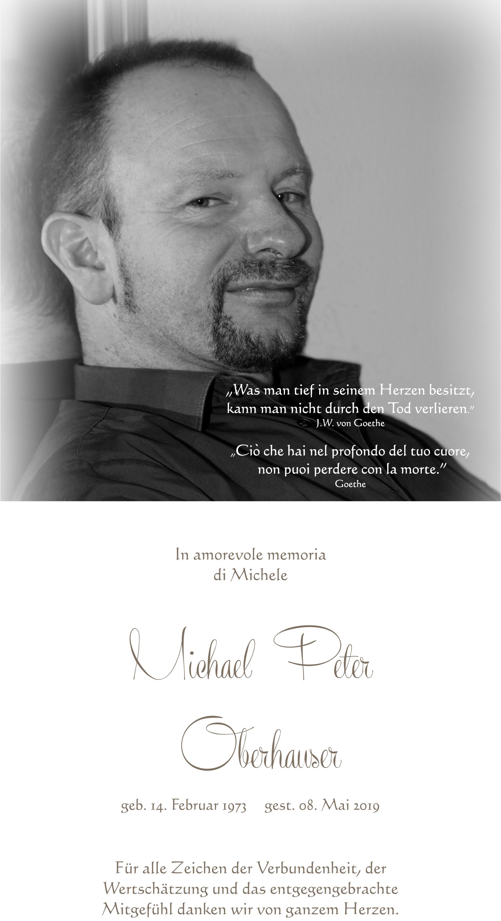 Neue Kerze für Michael Peter Oberhauser entzünden.