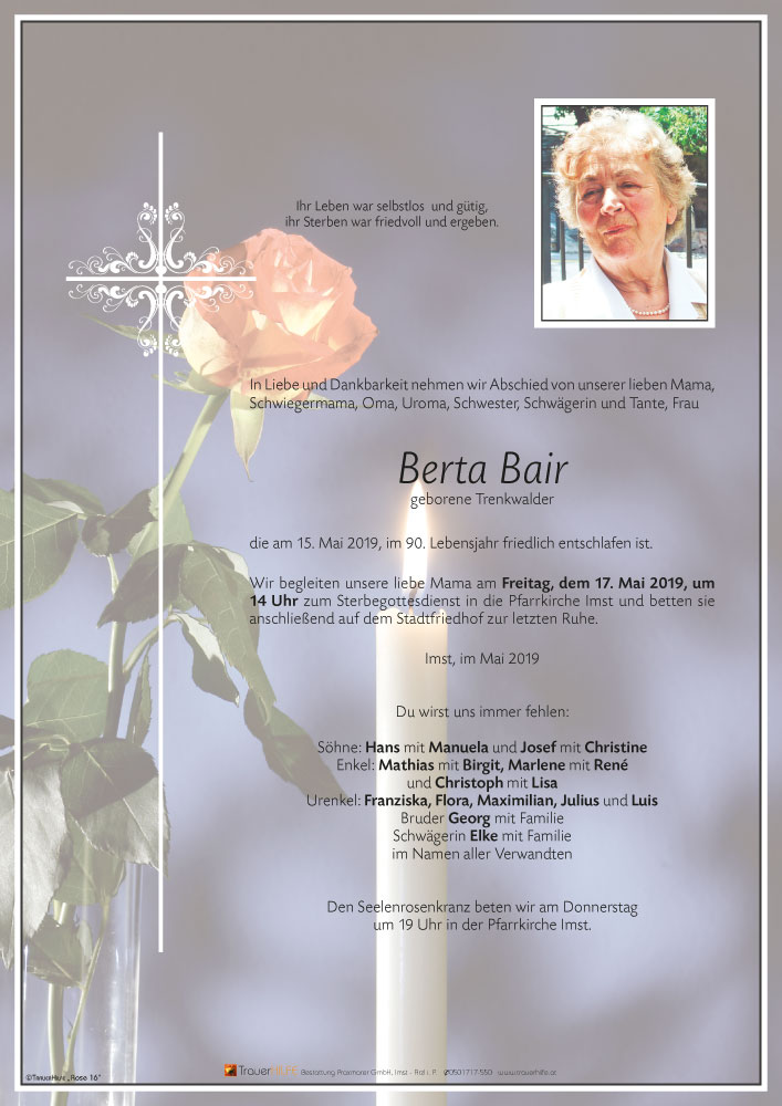 Aurichtige Anteilnahme Familie Hairer17.05.2019 16:49 - Imster Autohaus Fam. Hairer