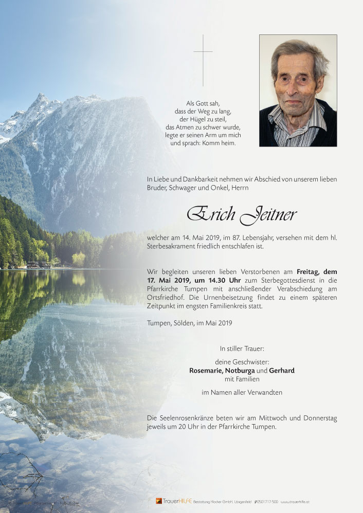 Am Heimgang eures lieben Bruders möchte ich euch mit diesen Worten unsere Anteilnahme bekunden, verbunden mit der Hoffnung auf ein Wiedersehen.