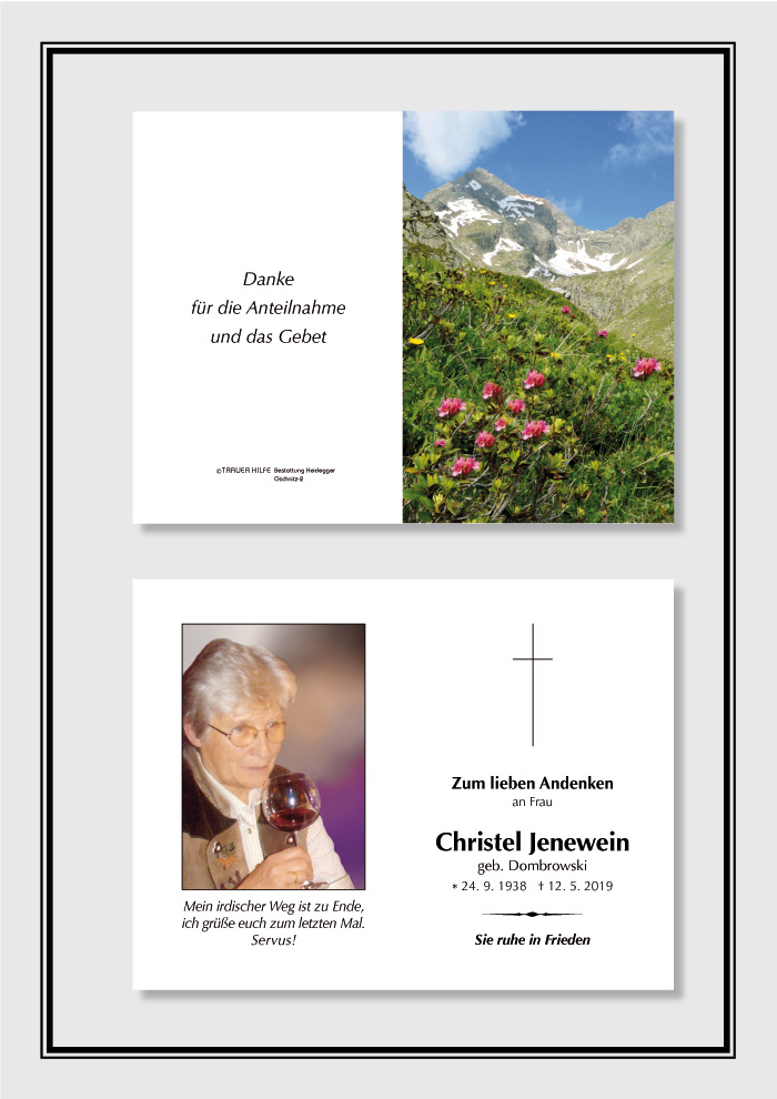 Bestattung wurde durchgeführt von: Karl Neurauter Karl Neurauter Bestattung Heidegger Brennerstraße 69 6150 - Steinach am Brenner Tel.: 05275 5211 zum Bestatter
