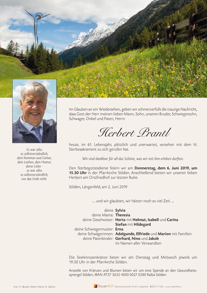 zutiefst betroffen hat mich der Anruf einer Bekannten aus Sölden gemacht. Der Herbert ich konnte es gar nicht glauben. Dir liebe Tresl, die schon so viel in Ihrem Leben mitgemacht hat und trotzdem ein Mensch mit soviel Lebensfreude und und positiver Einstellung ist. Wahrscheinlich hält dich nur ein unbändiges Gottvertrauen . Dir liebe Sylvia, mir fehlen die Worte ...wünsche ich einfach viel Kraft und Menschen die dich halten und auffangen.