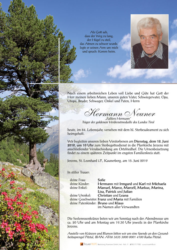 Friedhof Jerzens, † 15.06.2019 (83 Jahre)