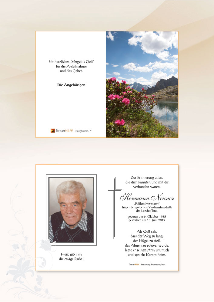 Bestattung wurde durchgeführt von: Daniel Klocker Bestattung Praxmarer GmbH Thomas Walch Str. 4 6460 - Imst Tel.: 05412 64250 zum Bestatter