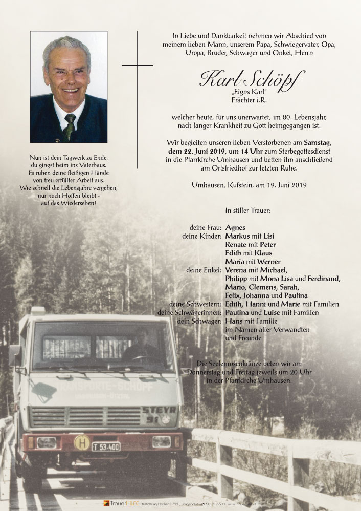 Meine aufrichtige Anteilnahme zum Heimgang eures Karls