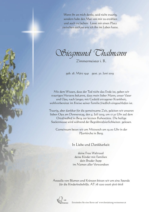 Friedhof Berg, † 30.06.2019 (78 Jahre)