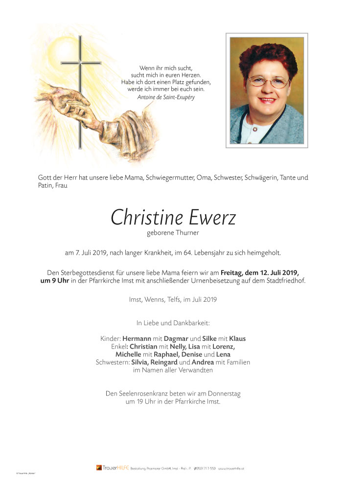 Neue Kerze für Christine Ewerz entzünden.