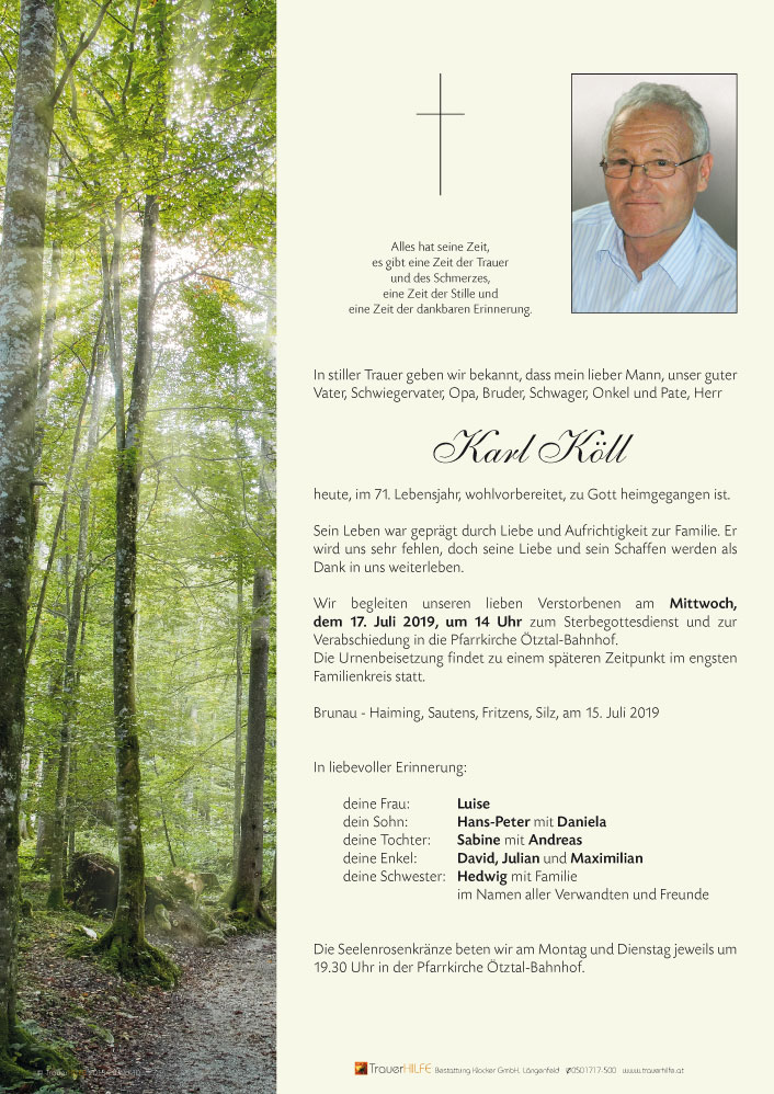 Neue Kerze für Karl Köll entzünden.