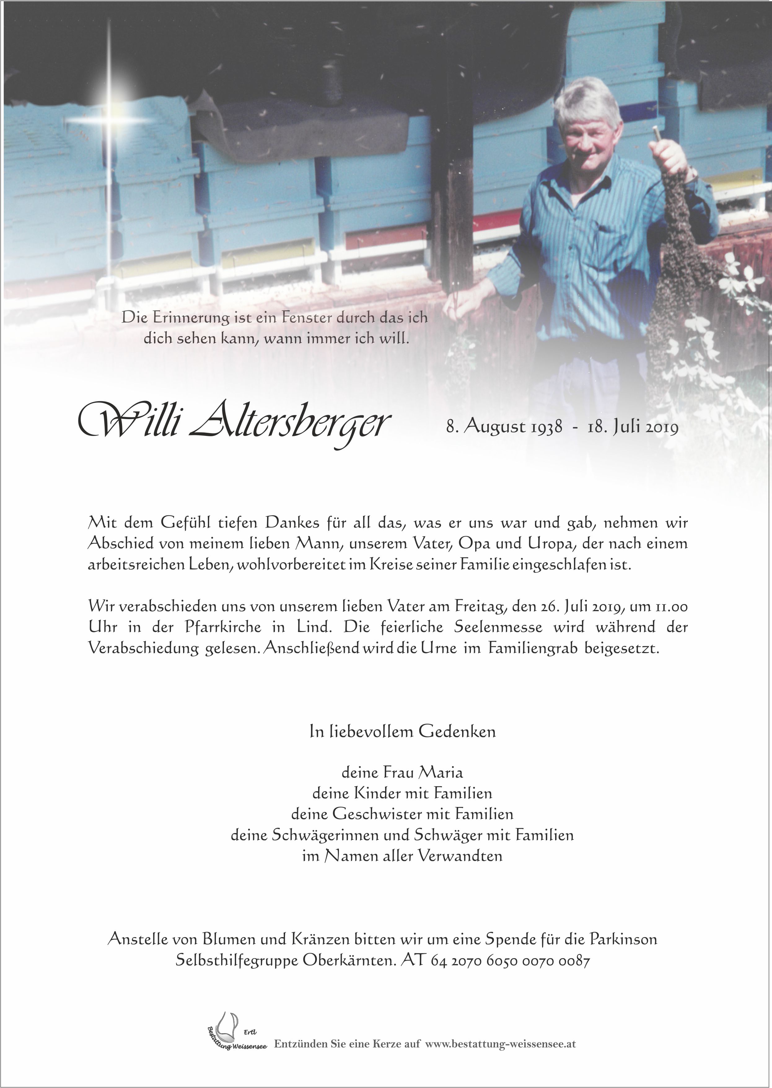 Neue Kerze für Wilhelm Altersberger entzünden.