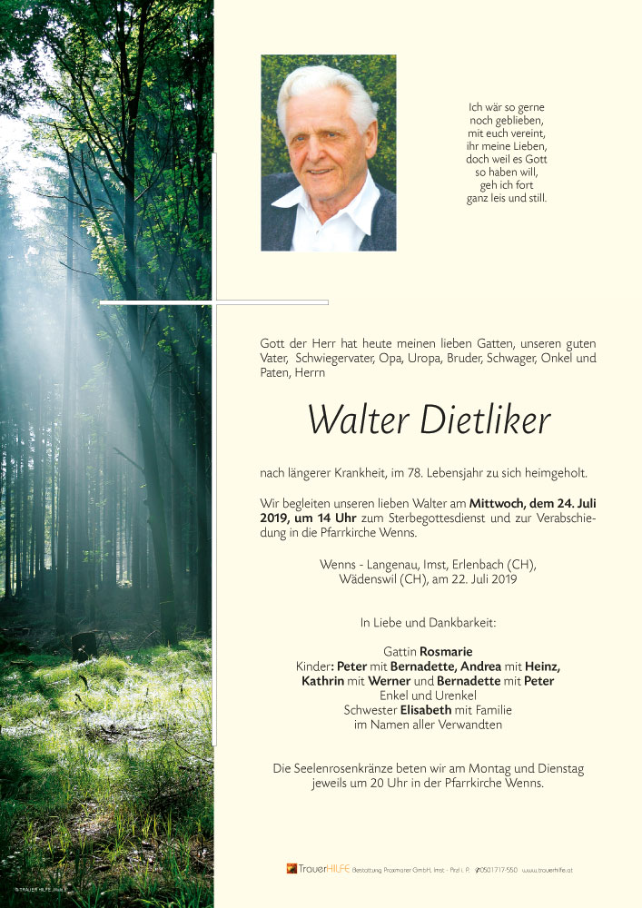 Lasst Walter in Euren Erinnerungen und in Euren Herzen weiter leben.