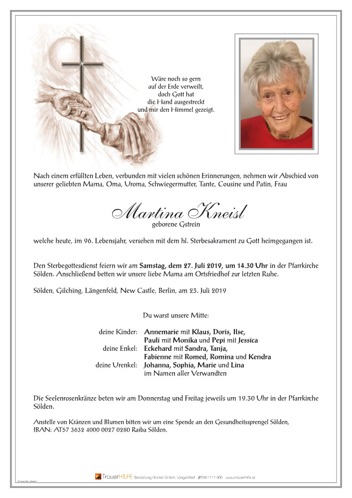 Gott sei Dank durfte ich sie vor drei Wochen noch einmal in den Arm nehmen....