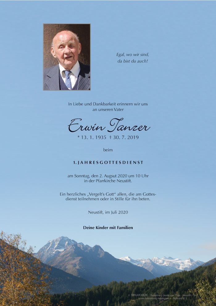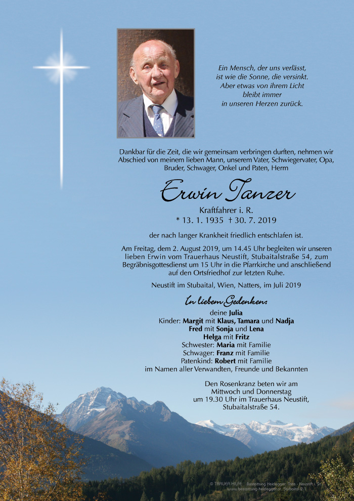 Friedhof Neustift im Stubaital, † 30.07.2019 (84 Jahre)