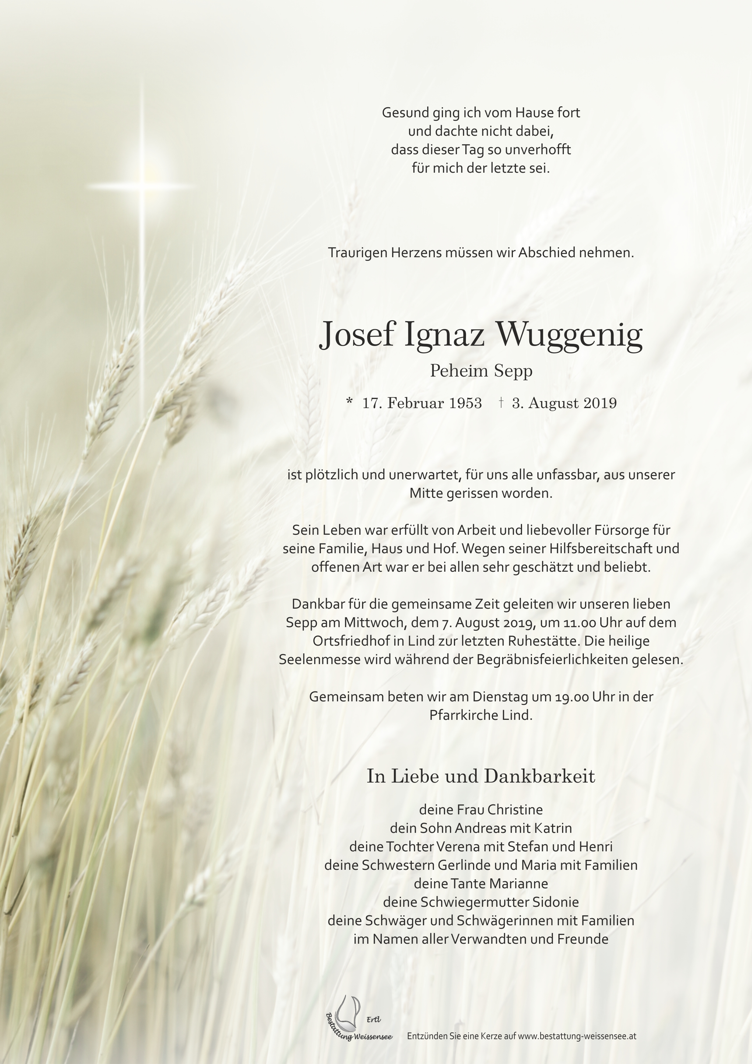 Bestattung wurde durchgeführt von: Markus Ertl Bestattung Weissensee Neusach 26 9762 - Weißensee Tel.: 04713 22 29 zum Bestatter