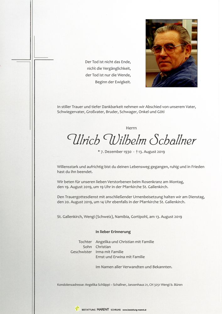 Neue Kerze für Ulrich Wilhelm Schallner entzünden.