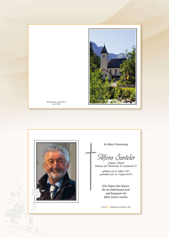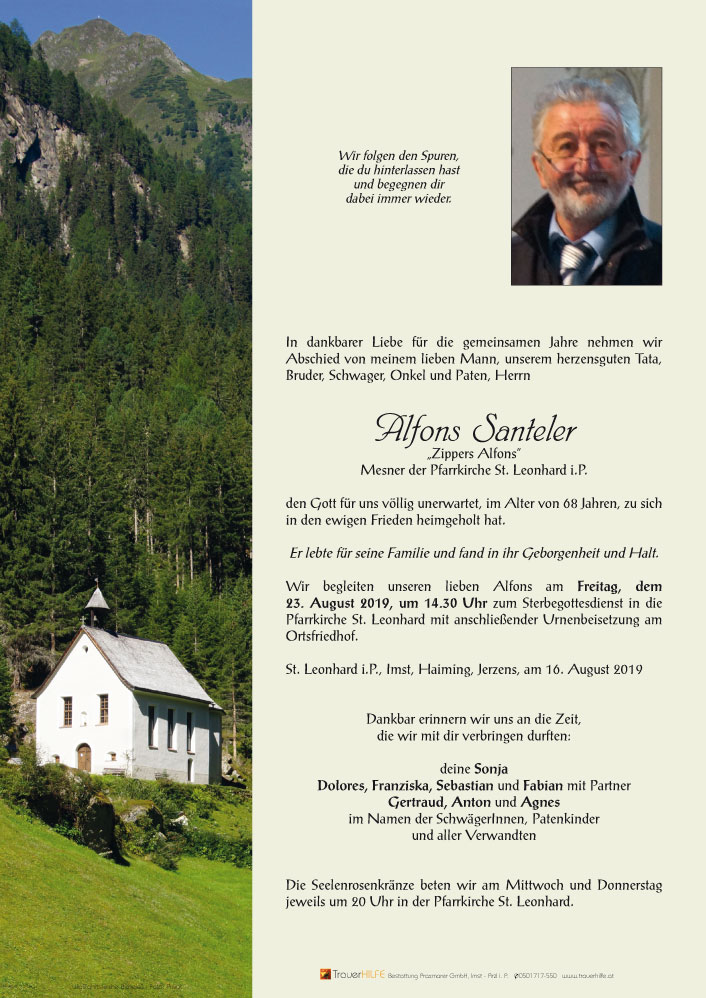 In seiner umgänglichen Art, seinem Humor und den treffenden Kommentaren die er auch am Stammtisch von sich gab zu den verschiedensten Dingen des Lebens hat er auch uns oft über schwierige Situationen hinweg geholfen. Mit ihm stirbt wieder ein Stück Pitztaler Originalität. Mögen ihm seine guten Taten, vor allem jene die er Menschen aus dem Tal und der Kirche geleistet hat, in der anderen Welt vergolten werden.