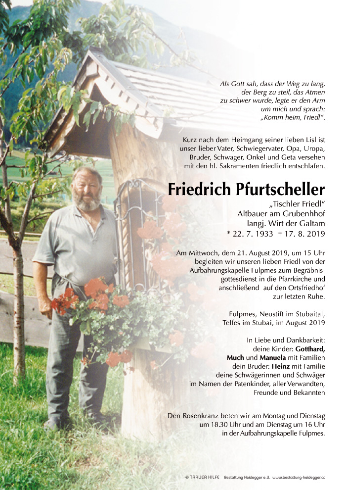 Friedhof Fulpmes, † 17.08.2019 (86 Jahre)