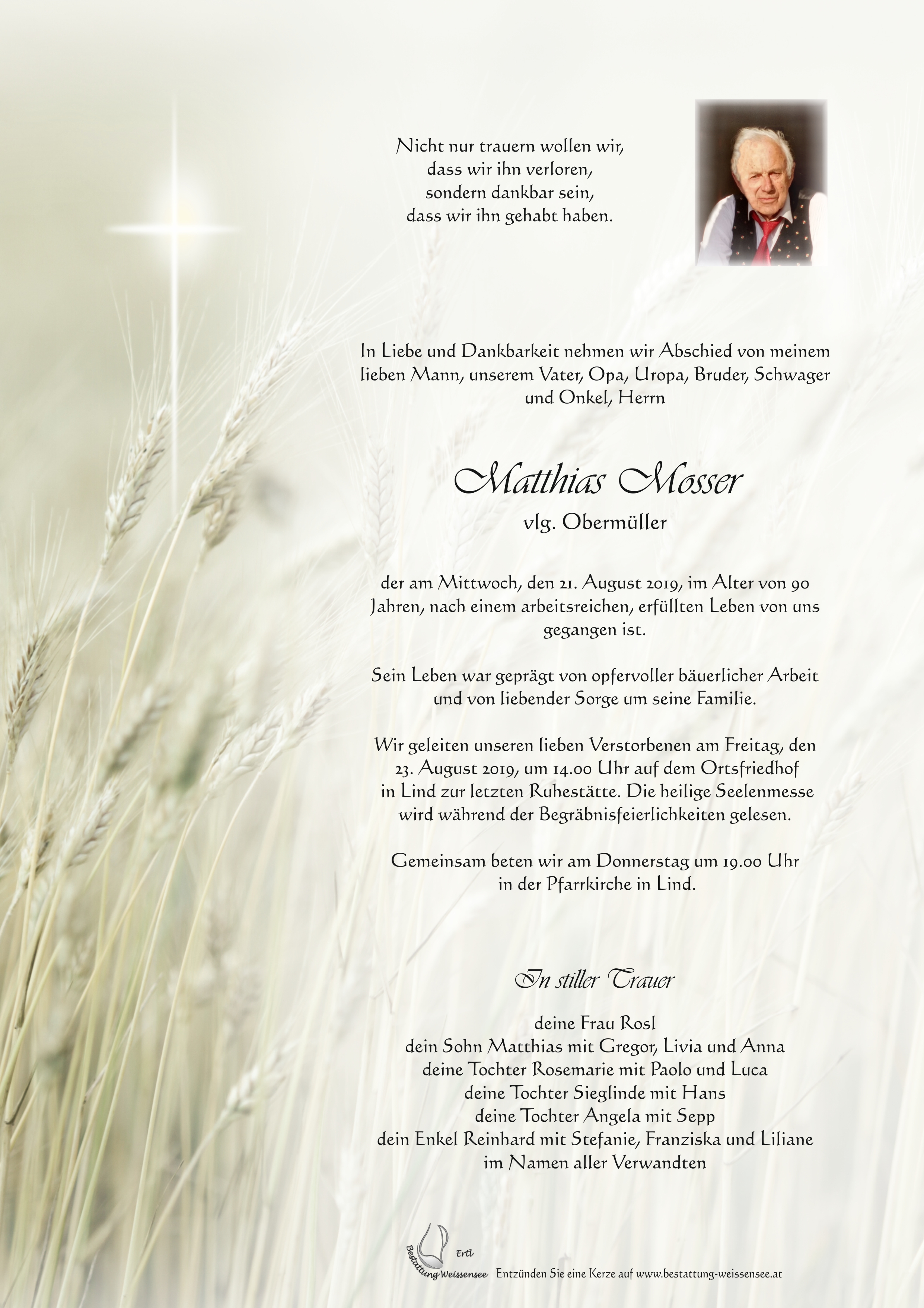 Friedhof Lind im Drautal, † 21.08.2019 (90 Jahre)