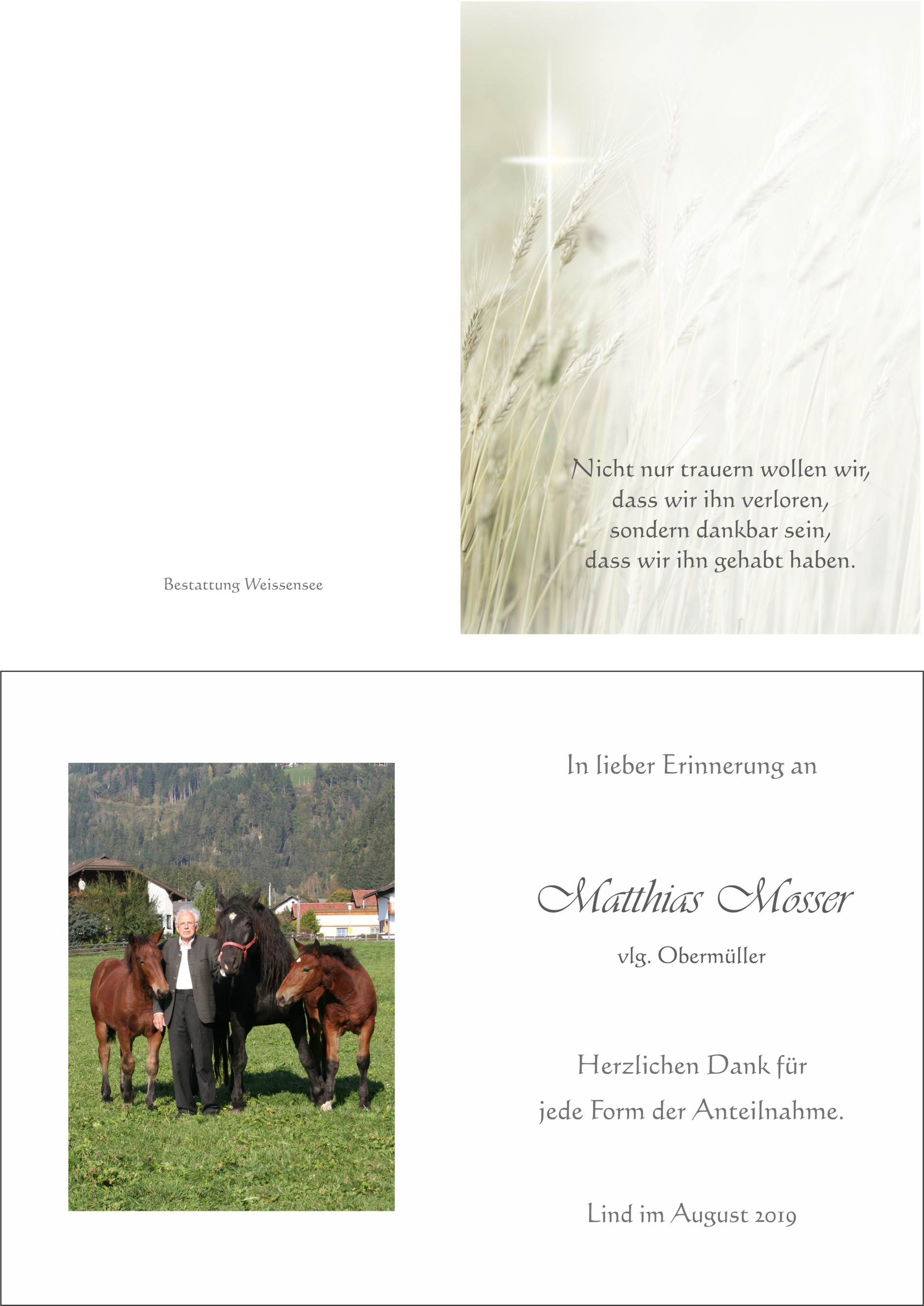 Bestattung wurde durchgeführt von: Markus Ertl Bestattung Weissensee Neusach 26 9762 - Weißensee Tel.: 04713 22 29 zum Bestatter