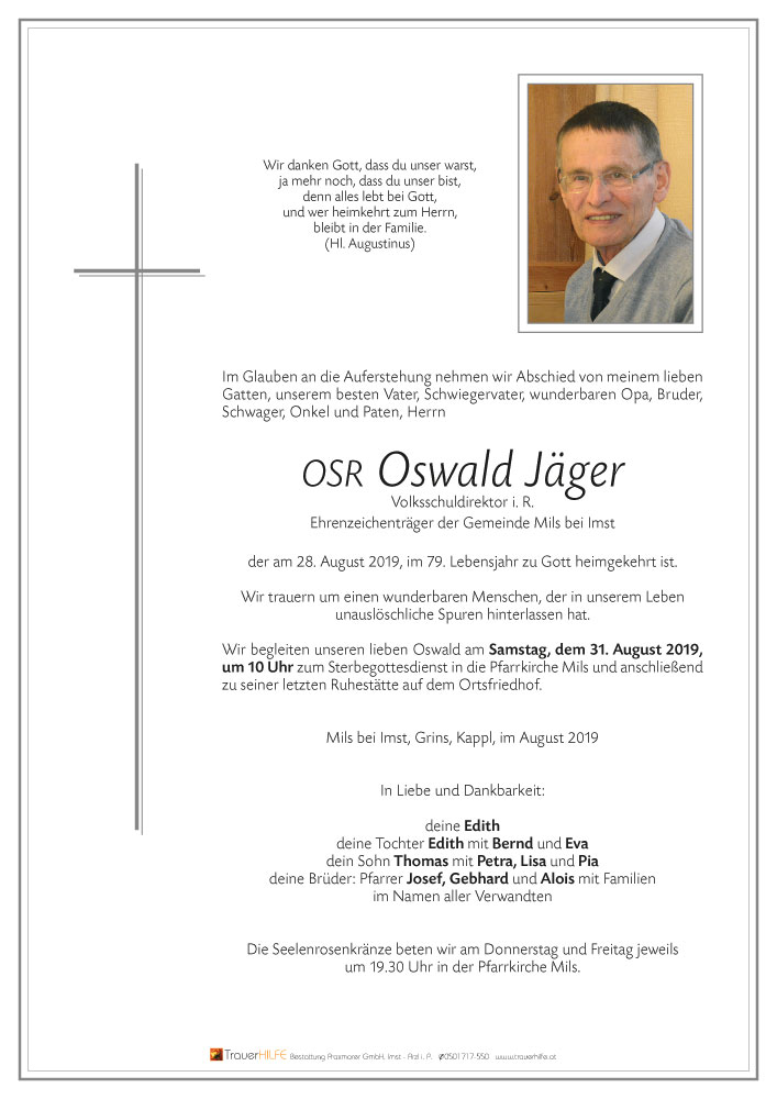 Friedhof Mils bei Imst, † 29.08.2019 (78 Jahre)