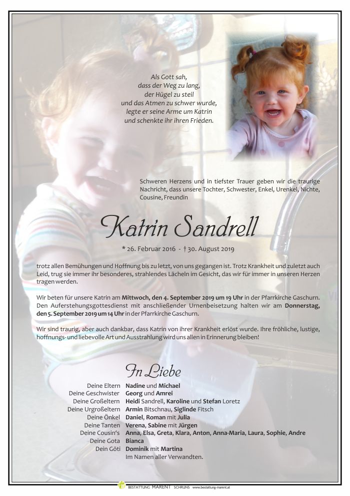 Mein aufrichtiges Beileid möchte ich euch aussprechen. Es zerreißt mir das Herz wenn ich daran denke, dass ein so liebes, unschuldiges Wesen aus dem Leben und aus eurer Mitte gerissen wird! Ich wünsche euch und euren Kindern viel Kraft für diese harte Zeit.... damit irgendwann diese tiefe Wunde nicht mehr so sehr weh tut und ihr voller Liebe auf die Zeit mit eurem Spatz zurückschauen. Eine traurige Mama aus dem Zillertal.