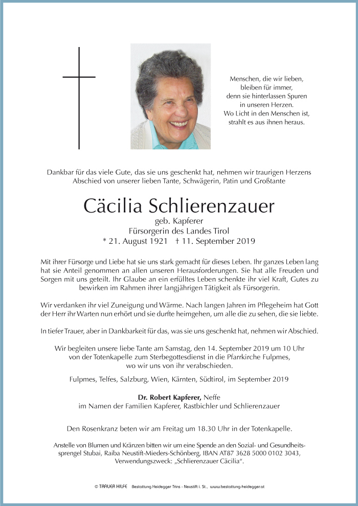 Friedhof Fulpmes, † 11.09.2019 (98 Jahre)