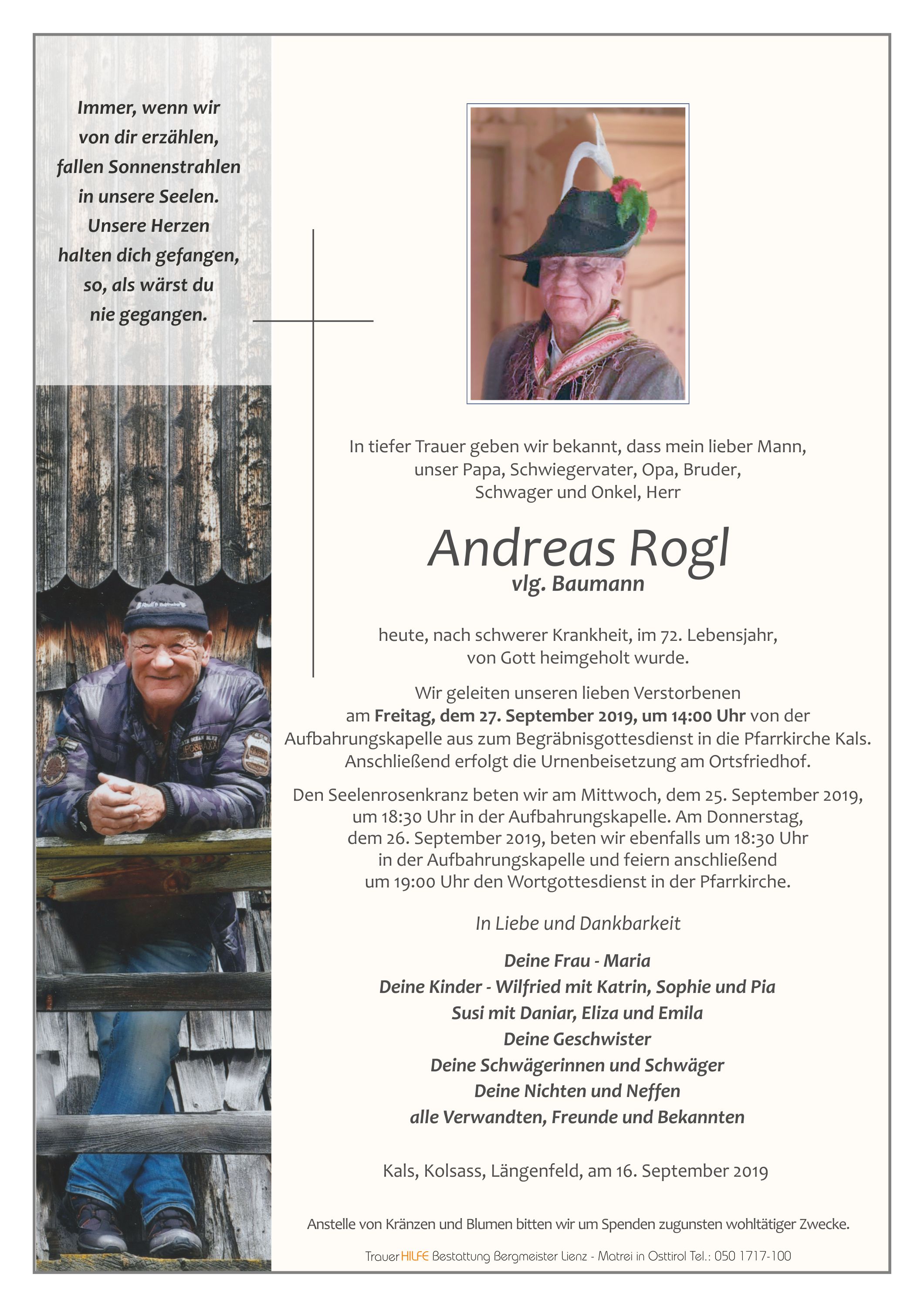 Liebe Maria, Susi und Willfried! Unser Aufrichtiges Beileid viel Kraft in der schweren Zeit! Sonja mit Walter Rafael Manuel und Melanie18.09.2019 08:22 - Sonja Mitterer(Dalpra)