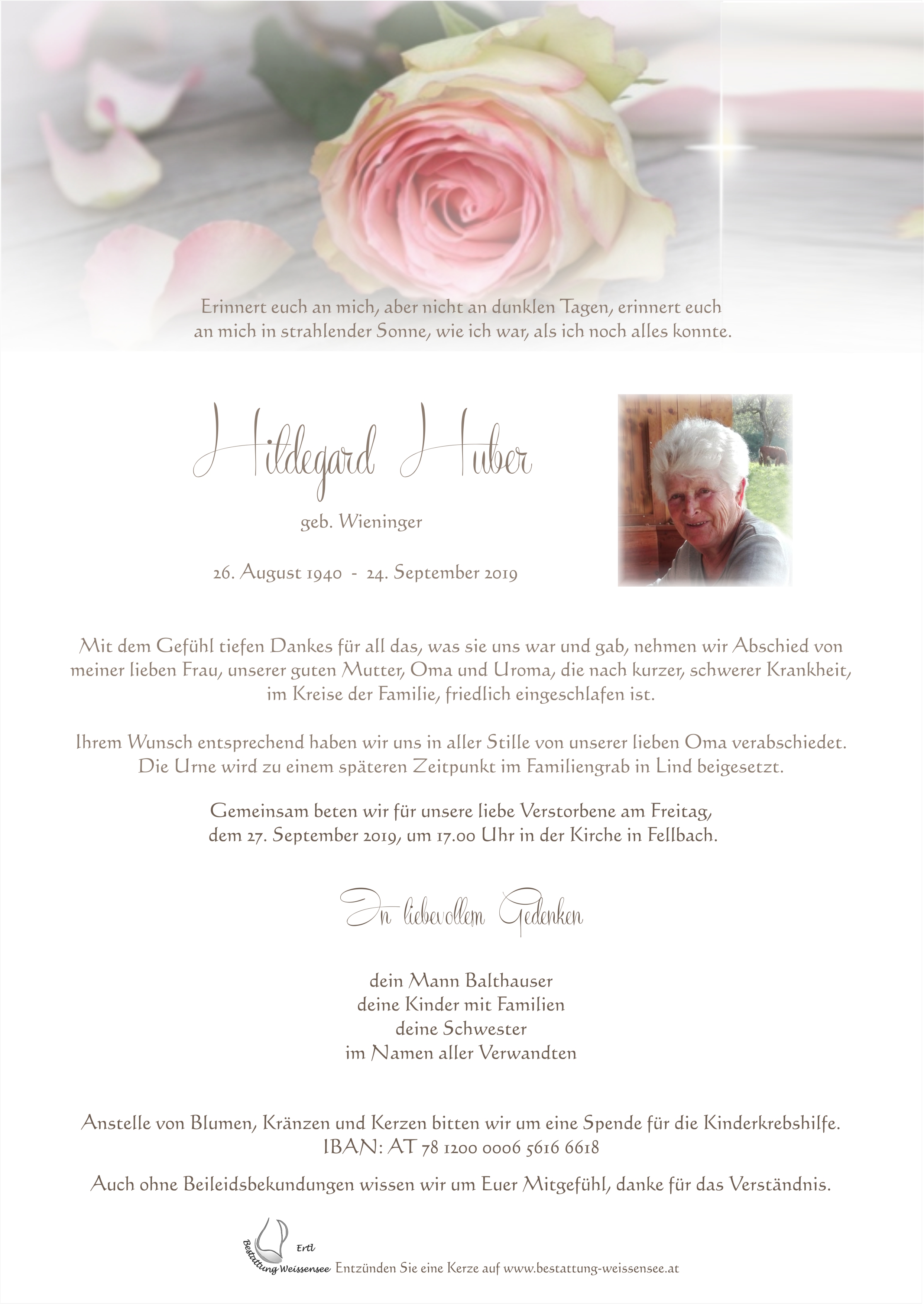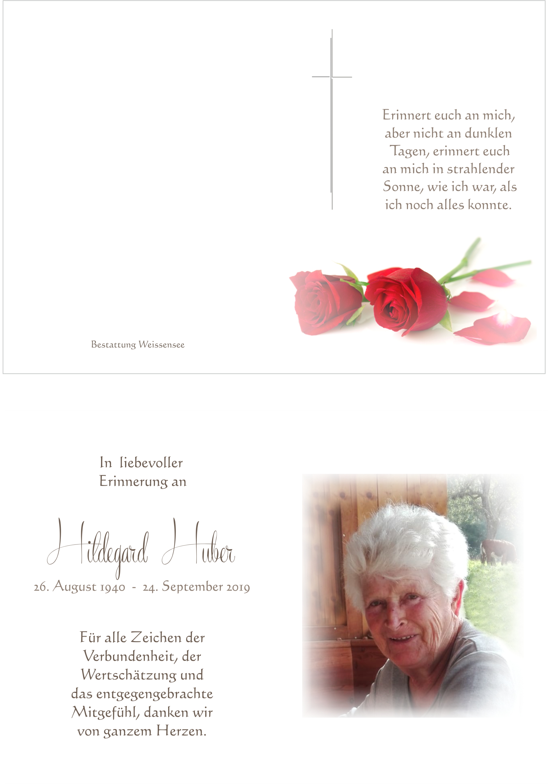 Bestattung wurde durchgeführt von: Markus Ertl Bestattung Weissensee Neusach 26 9762 - Weißensee Tel.: 04713 22 29 zum Bestatter