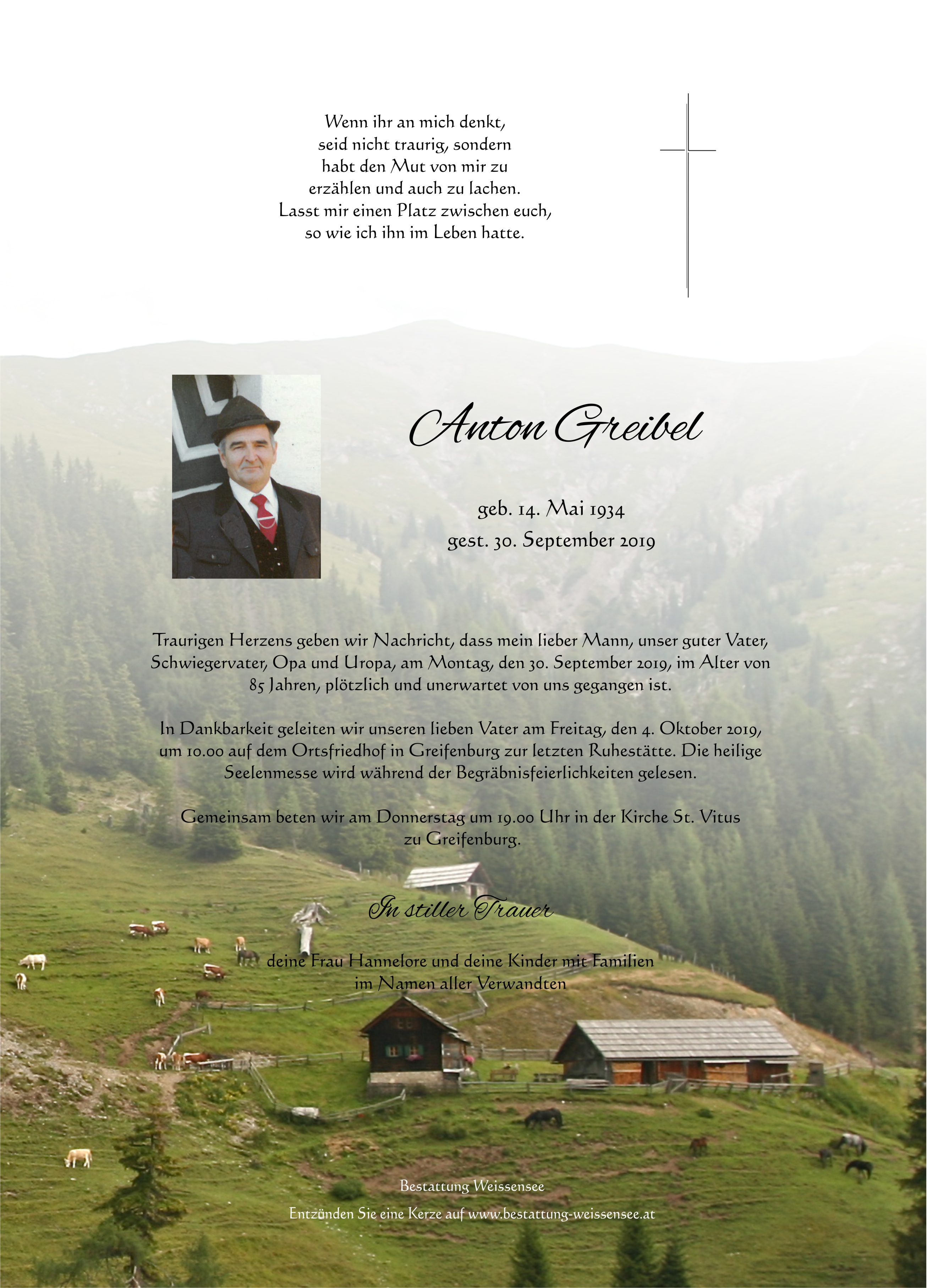 Friedhof Greifenburg, † 30.09.2019 (85 Jahre)