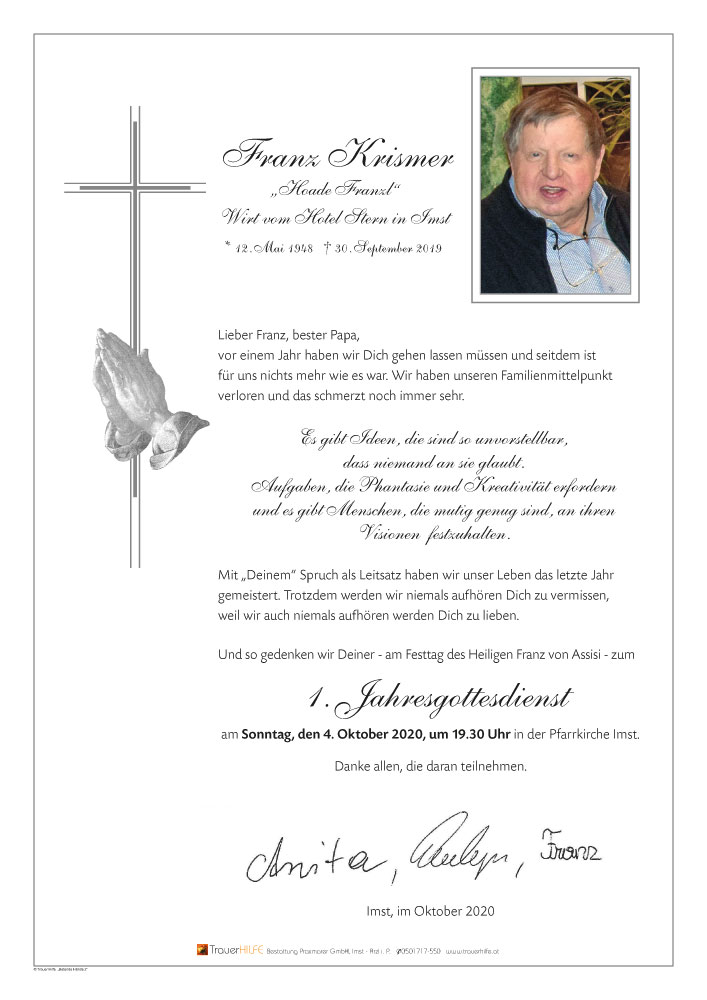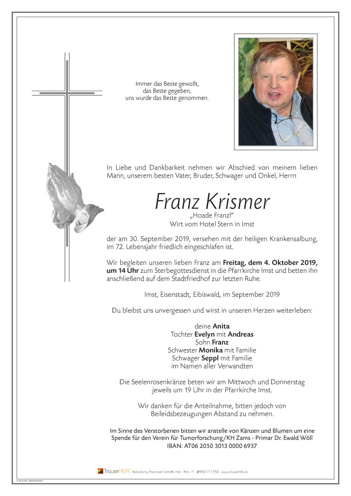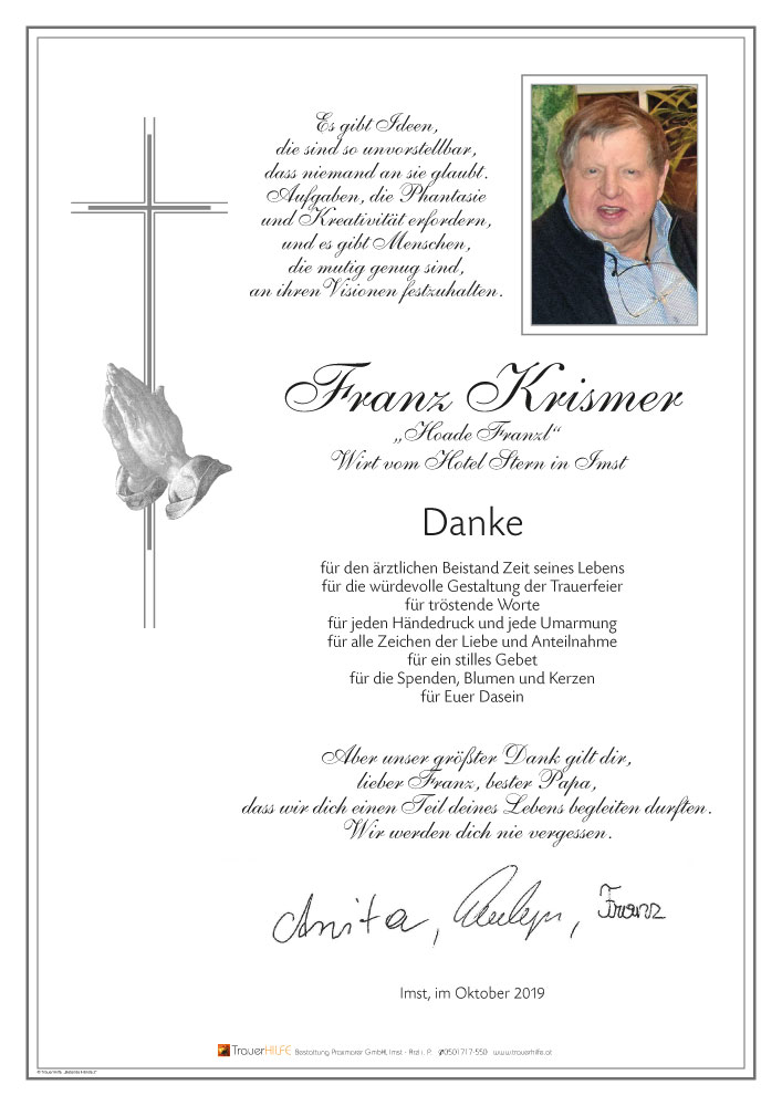 Sehr geehrte Trauerfamilie Krismer!