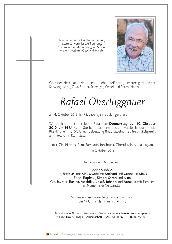 Bestattung wurde durchgeführt von: Daniel Klocker Bestattung Praxmarer GmbH Thomas Walch Str. 4 6460 - Imst Tel.: 05412 64250 zum Bestatter