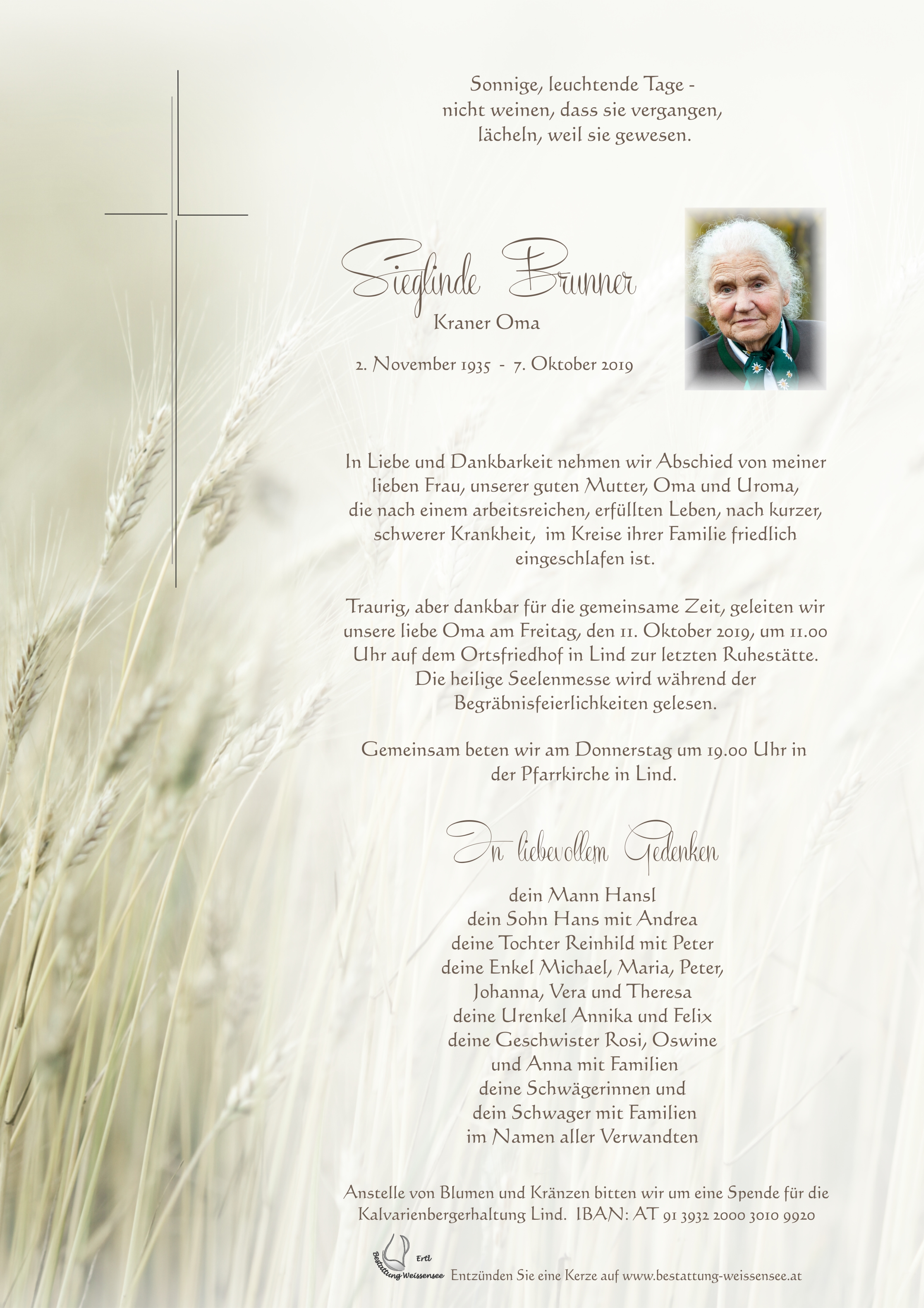 Friedhof Lind, † 07.10.2019 (83 Jahre)