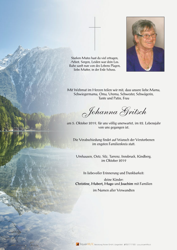 Bestattung wurde durchgeführt von: Daniel Klocker Bestattung Klocker GmbH Oberlängenfeld 41 6444 - Längenfeld Tel.: 05253 5561 zum Bestatter