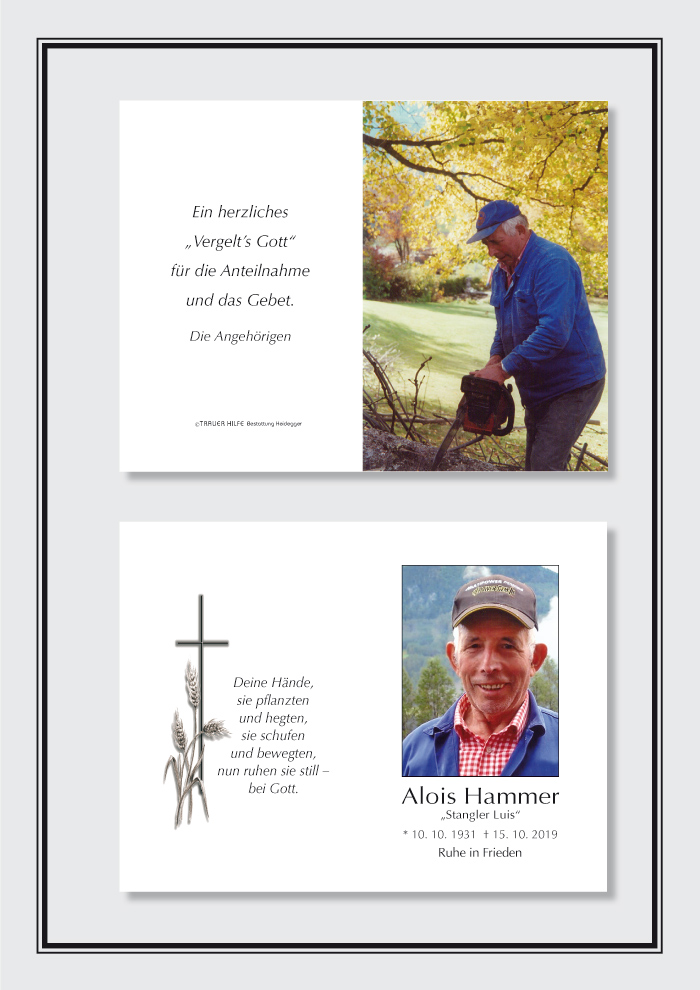 Bestattung wurde durchgeführt von: Karl Neurauter Karl Neurauter Bestattung Heidegger Brennerstraße 69 6150 - Steinach am Brenner Tel.: 05275 5211 zum Bestatter