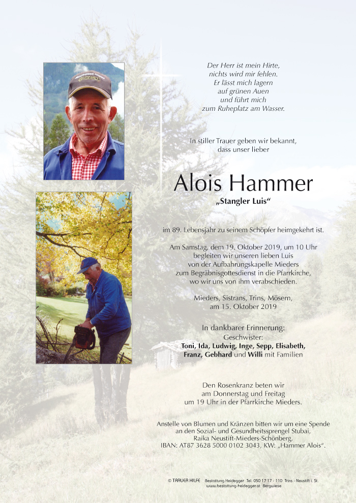 Friedhof Mieders, † 15.10.2019 (88 Jahre)