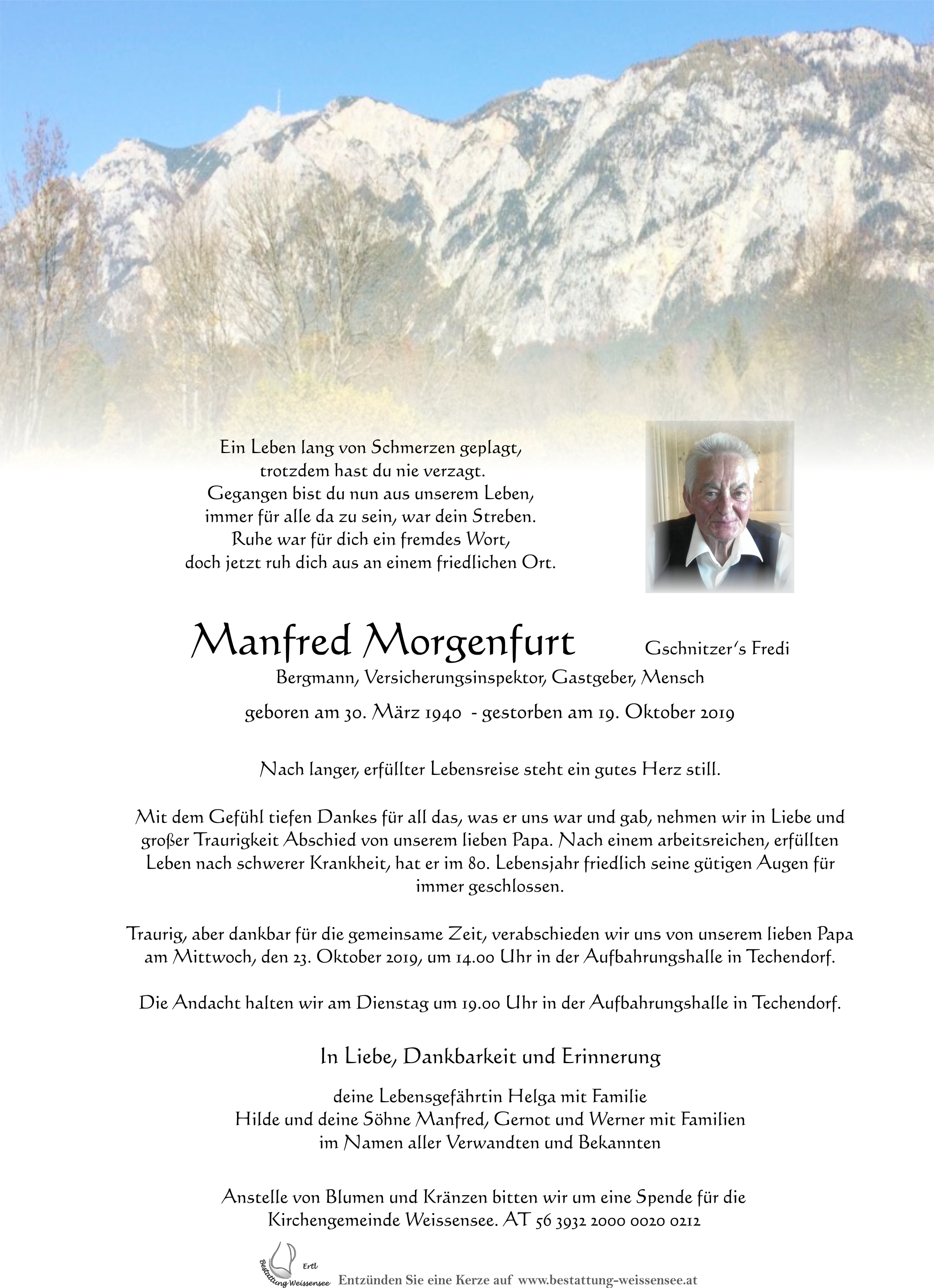 Neue Kerze für Manfred Morgenfurt entzünden.